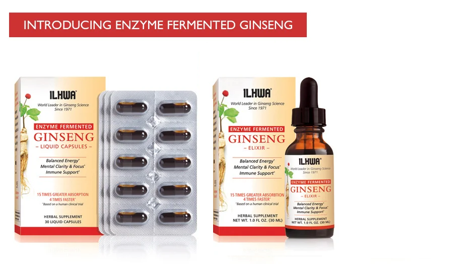 Elixir is an exciting breakthrough in flexibility and convenience. By combining ILHWA patented high absorption enzyme fermented ginseng with organic vegetable glycerine and purified water, we have created a liquid formula that can be delivered in drops.